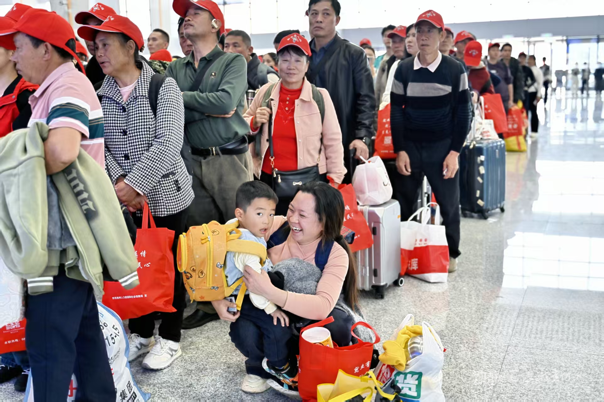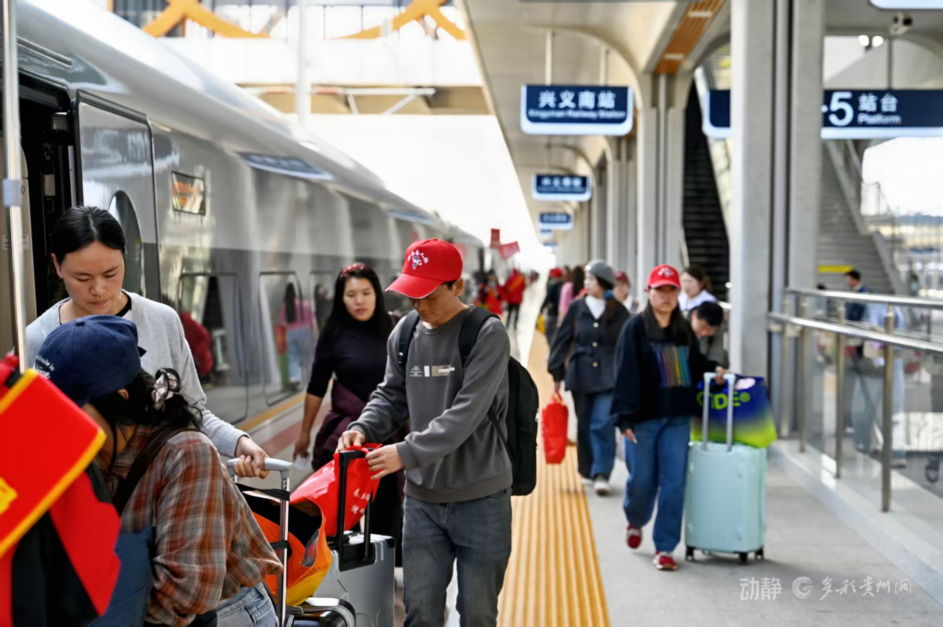 据悉,当天兴义南站还开行了至杭州东站的G4938次务工专列,搭载着500余名务工人员顺利返岗。下一步,成都局集团公司将根据客流变化和务工需求,动态增开返岗务工专列、优化班次安排,不断深化“点对点、一站式”服务机制,精准对接地方劳务输出需要,以充足的运力护航人民群众安全出行、助力地方经济高质量快速发展。