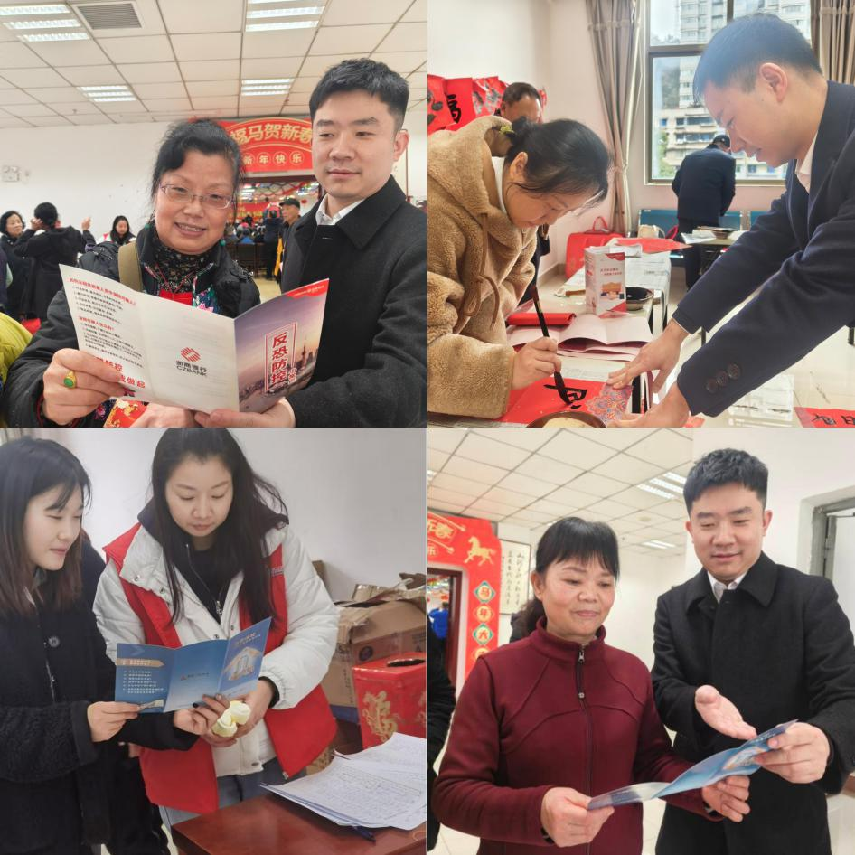活动现场,社区礼堂张灯结彩,处处洋溢着喜庆的节日氛围。本次活动邀请了书法老师现场书写春联,将金融知识融入墨香四溢的春联中,让居民在感受传统文化魅力的同时,也把防范金融风险的意识带回家。浙商银行贵阳分行的工作人员与居民们一起,手持“防范非法集资”“守护财产安全”的主题春联,在欢声笑语中传递金融安全理念。