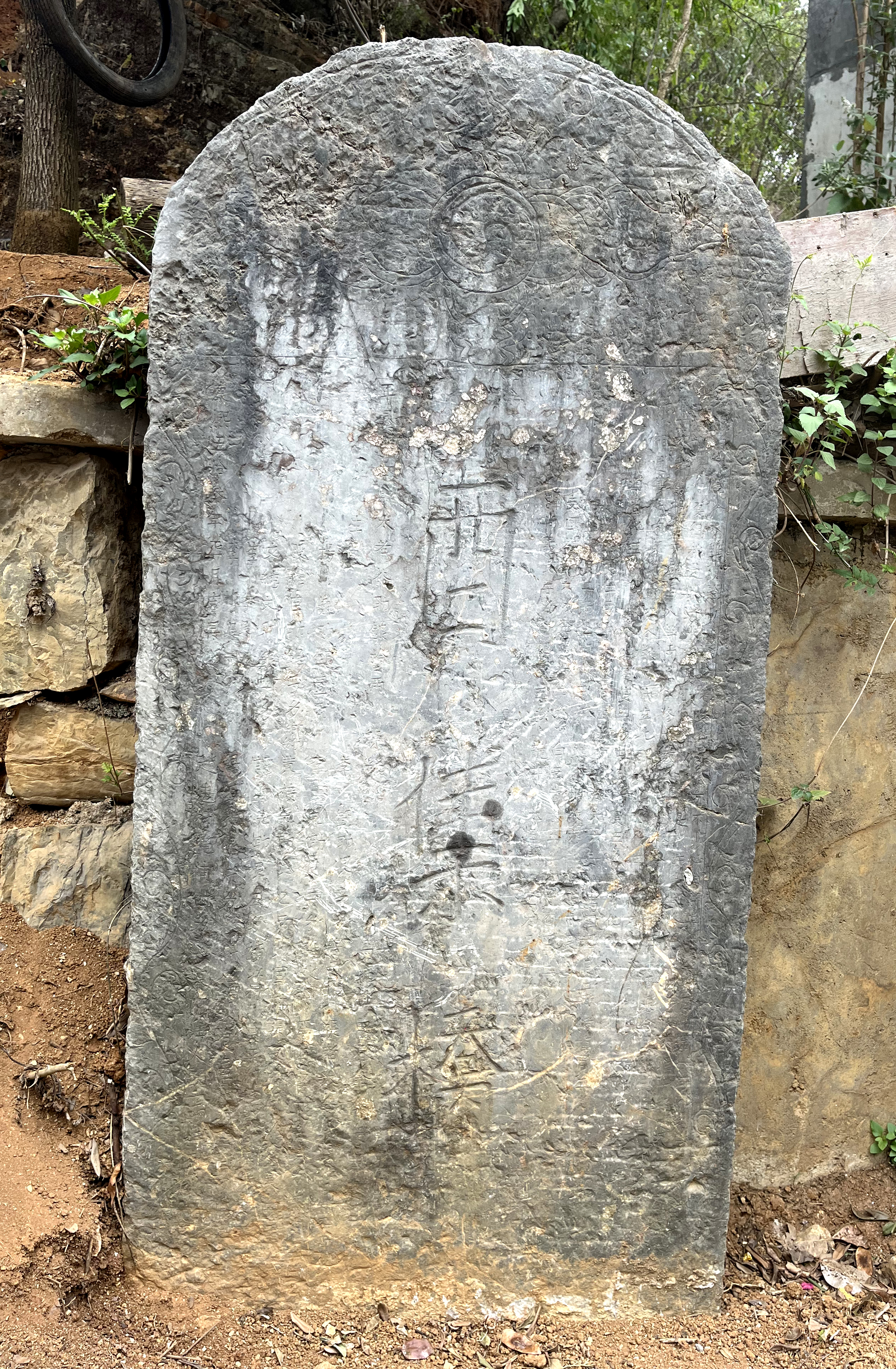 第二通石碑为四棱碑,庑殿顶碑帽。碑身高1.52米,宽0.4米,三面刻字,两侧碑均为捐款人员名单,正碑额题“迎仙桥”三字。首题文字模糊,能辨识“徐家鹏、窦显、陈家谟、黄铣、张荣中暨众等,于光绪十一年(1885年)孟春月上九日”倡议捐资,筹备修桥。窦显为贵州乌沙革里大户窦家人,陈家谟为云南龙潭名门陈家人,故可知仍是滇黔两地联合修桥。桥叙正文起名《文昌帝君恩锡桥叙》,借文昌帝君赐名,记述建桥历程。由“桂宫宫真官代笔”,即寓意有官职的仙人“代笔”。诗云:“跨鹤乘鸾下九洲,心香渺渺达帝前。奉命临坛来叙事,神明涤虑听吾言。”比喻凡人和神仙都要知道这段建桥历史。