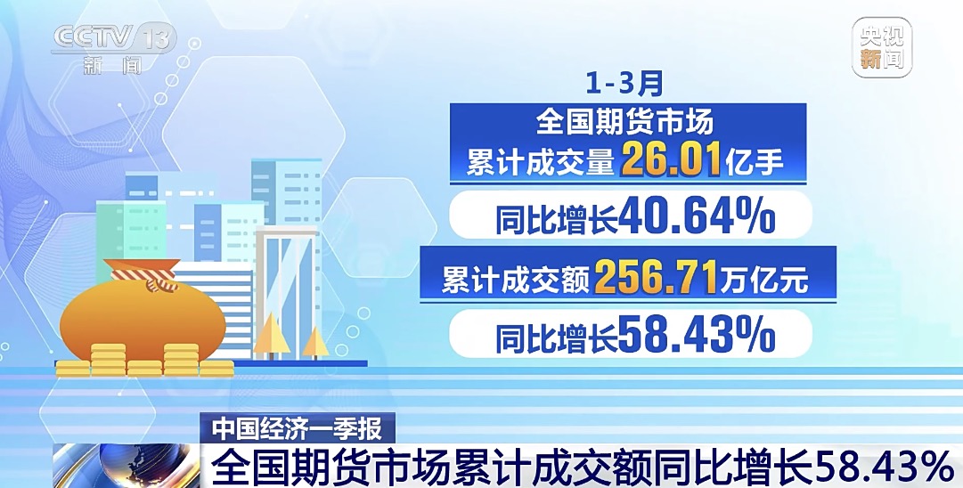 中国期货业协会公布的数据显示,1-3月全国期货市场累计成交量为26.01亿手,累计成交额为256.71万亿元,同比分别增长40.64%和58.43%。