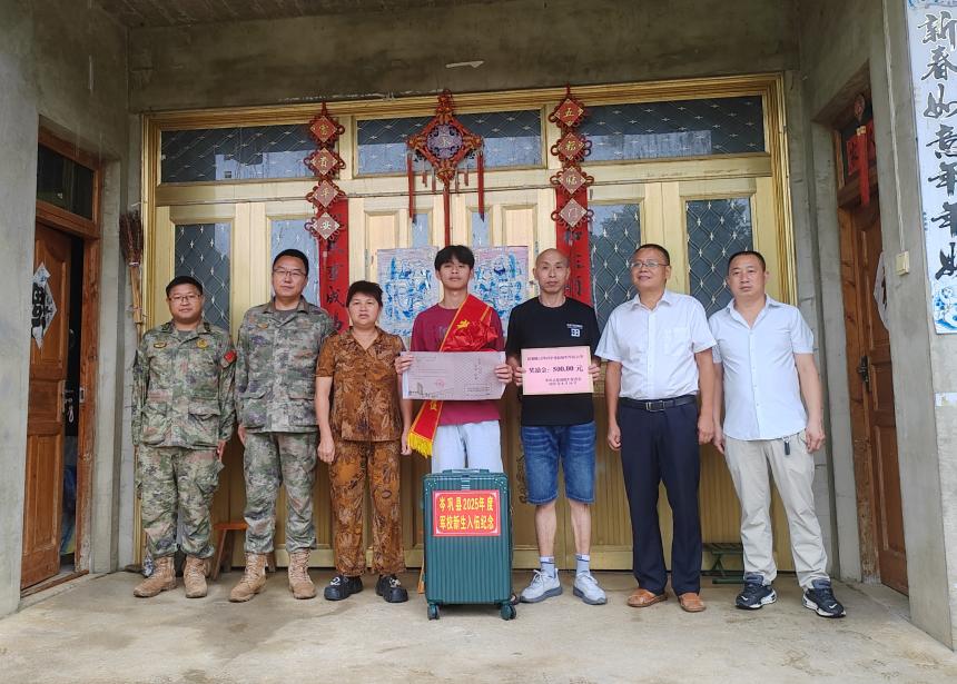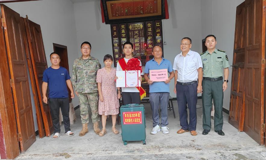 近日,岑巩县人民武装部、县退役军人事务局、县爱国拥军促进会等部门组成慰问小组,为2025年被军事院校录取的优秀青年家庭送喜报、奖励金,以庄重仪式传递尊崇,激励更多青年投身国防。