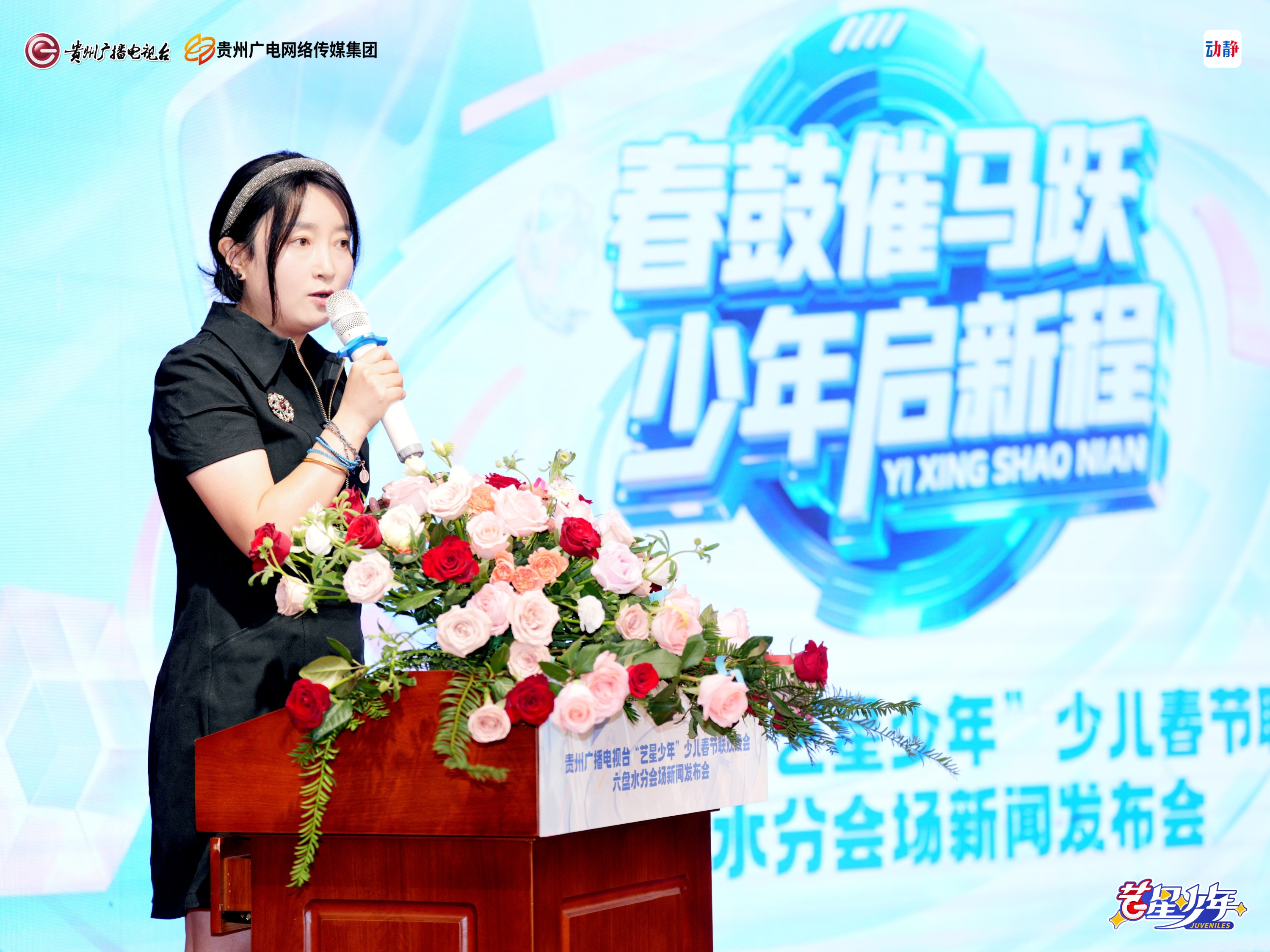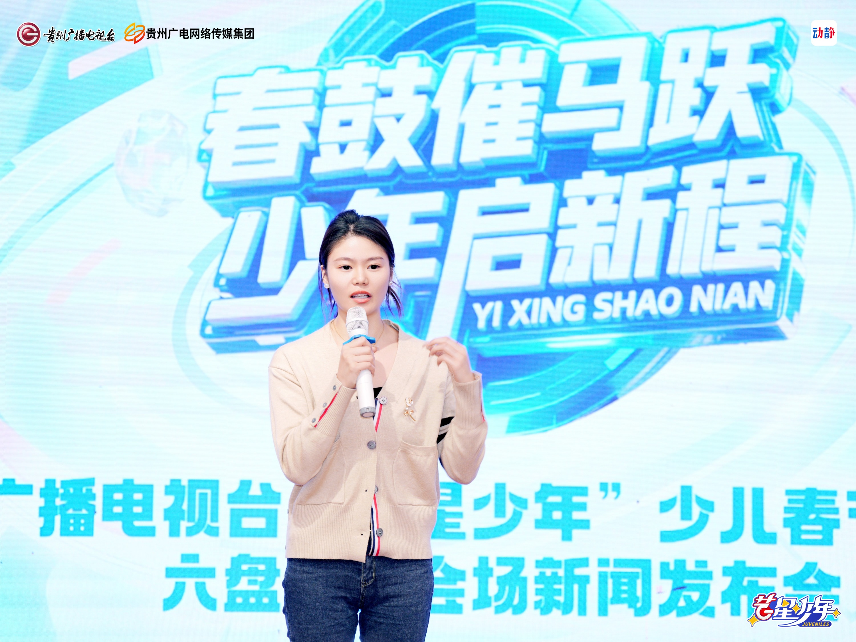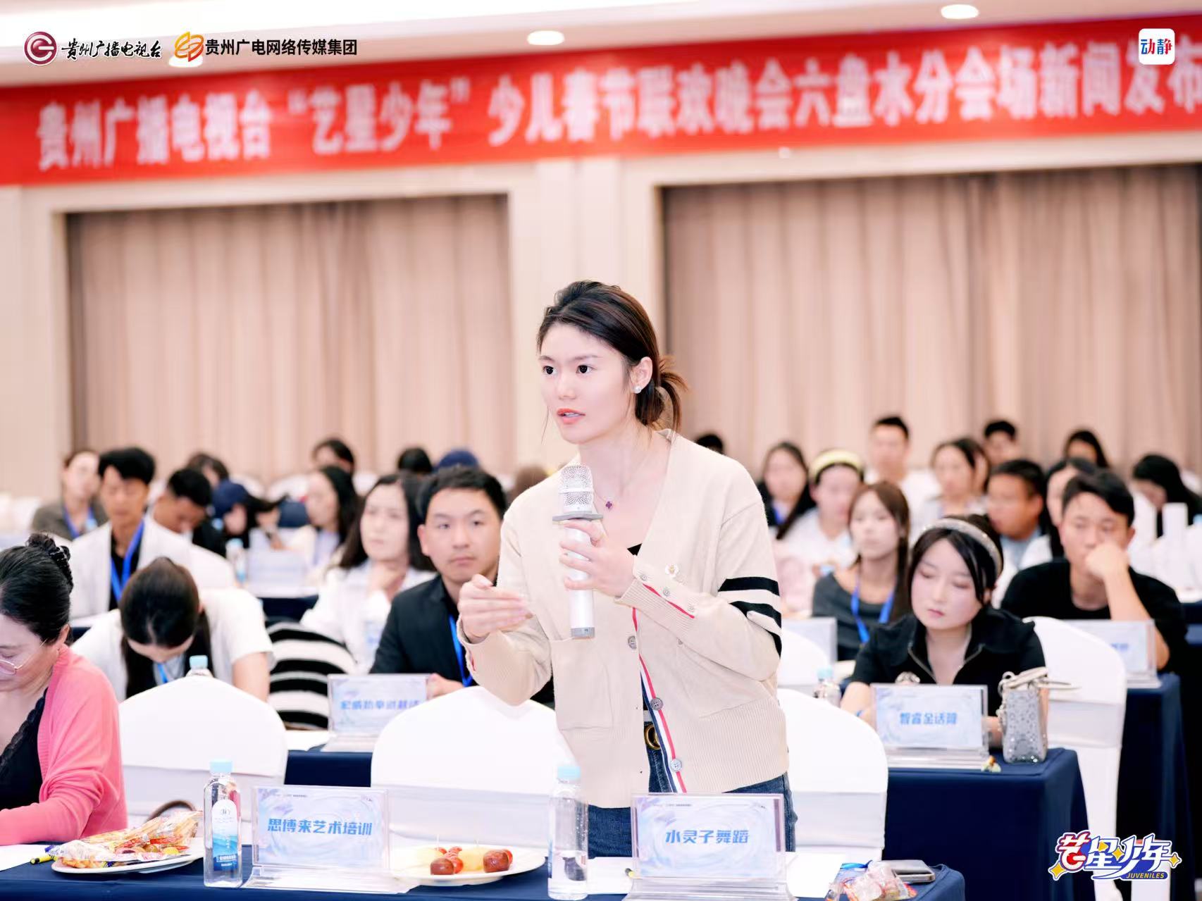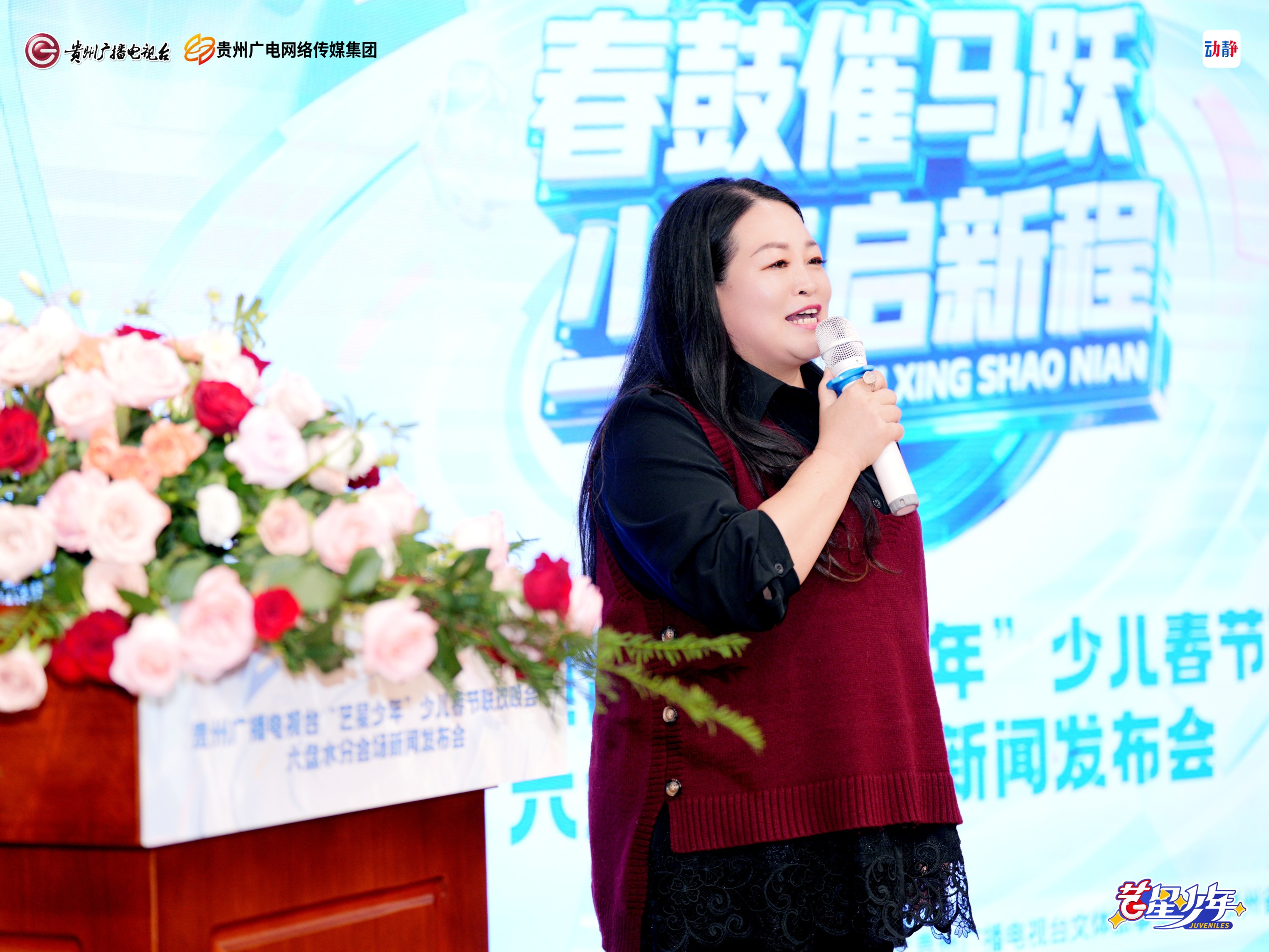 作为本次活动的在地承办方,贵州广播电视台“艺星少年”驻六盘水办公室主任韩老师随后登台发言。她代表六盘水办公室对省台的信任以及各位同仁的支持表示了衷心感谢,并郑重承诺,将全力协同,充分发挥本地优势,为各合作机构提供最及时的服务与最坚实的保障,确保六盘水的小选手们能够无后顾之忧地备战春晚,将他们最优秀的一面展现给全省观众。