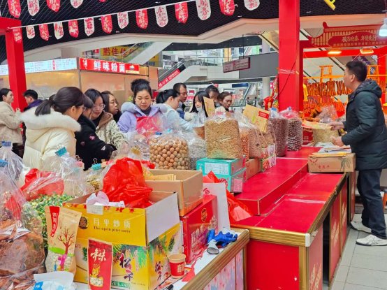 “我准备了2千多的预算,觉得线下看到实物更安心。”从抖音上看到年货节信息来贵阳西南商贸城采购的周凌印正在挑选过年用的坚果礼盒。