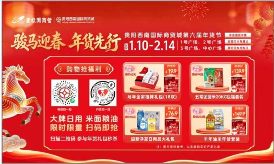 骏马驰骋迎新春,年货盛宴已开席。贵阳西南国际商贸城第六届年货节诚邀广大市民朋友莅临,选购心仪年货,参与趣味游园,共赴一场满载年味、福气与欢乐的新春之约,为即将到来的马年春节增添更多美好祈愿与幸福记忆。