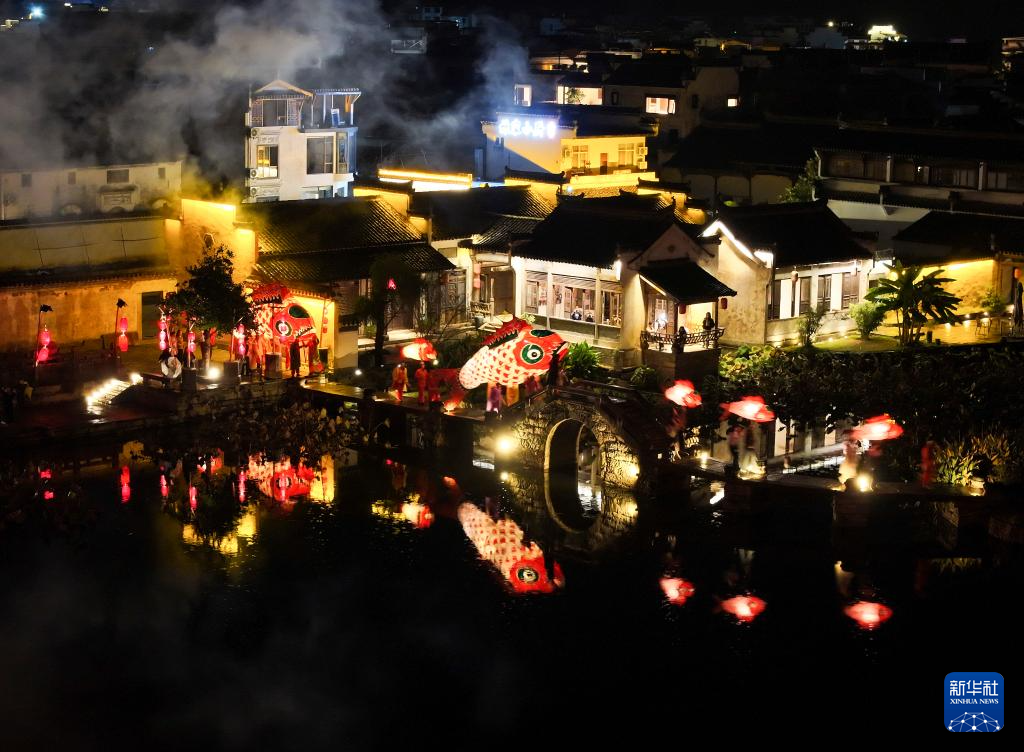 安徽呈坎:非遗鱼灯点亮古村夜色