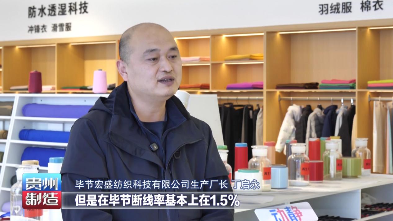 毕节宏盛纺织科技有限公司生产厂长丁启永说,公司由江西入驻到毕节,看中的第一个要素就是气候要素。因为毕节的温湿度比较高,断线率是很低的。在江浙地区平均断线率在3%,但是在毕节断线率基本上在1.5%,这对于生产效率还有产品的质量有一个很大的提升。