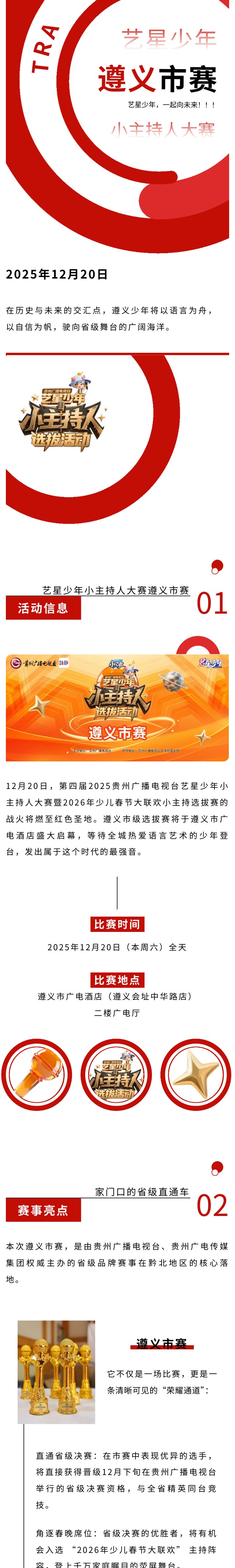红色遵城,新声绽放!艺星少年小主持人大赛遵义市赛本周六鸣锣开赛!