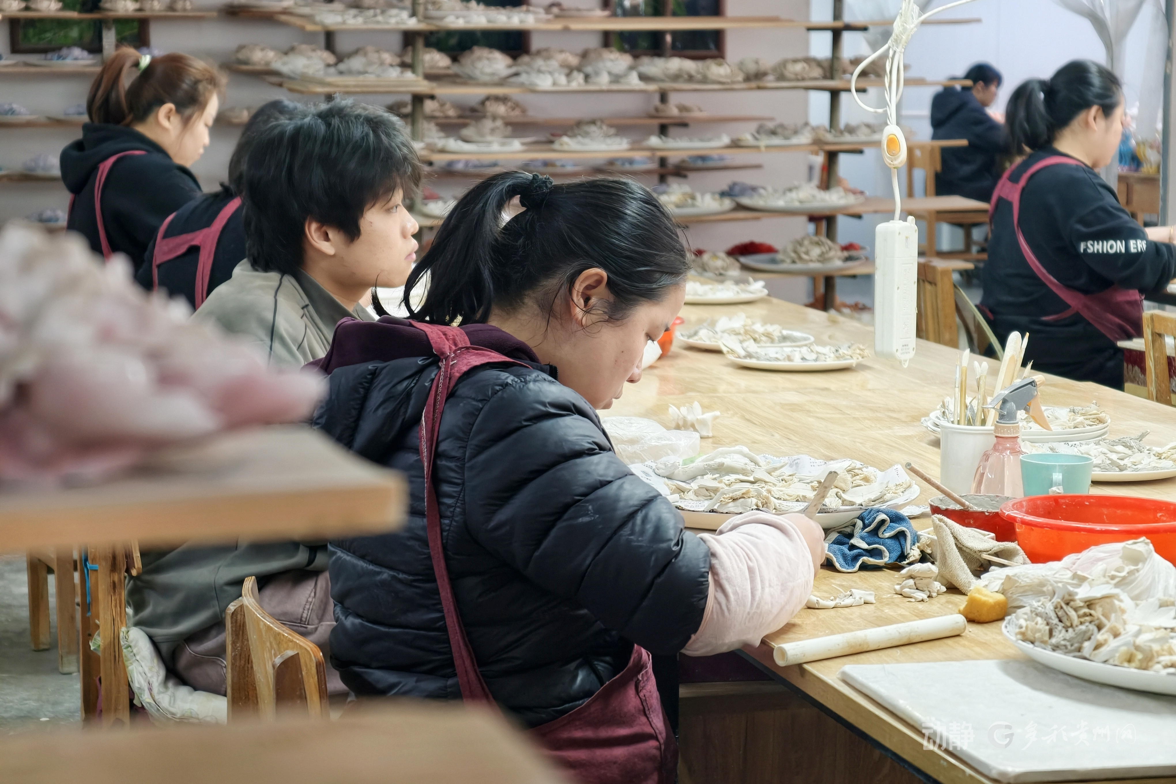在博物馆内,采风团成员不仅得以近距离欣赏“红玉瓣、黄金蕊、琥珀枝、翡翠叶”的牡丹瓷精品,更有幸现场体验了其制作的不易。洛阳牡丹瓷股份有限公司的技师李琦琦为记者们进行了一场“手把手”授课。从抟土为水滴状,到捏扁、拉薄形成花瓣弧度,看似简单的动作却极需巧劲与耐心。“拉一片花瓣也就几秒钟,最难的就是力度控制。新员工通常要花4到6个月专门练习这个。”李琦琦解释道。拿着自己手中略显笨拙的“花瓣”初体验,中央广播电视总台国际在线记者王雨晴感慨:“第一次做这样的手工,感觉很有意思,但要想捏好,还需要很多技术性的尝试。”
