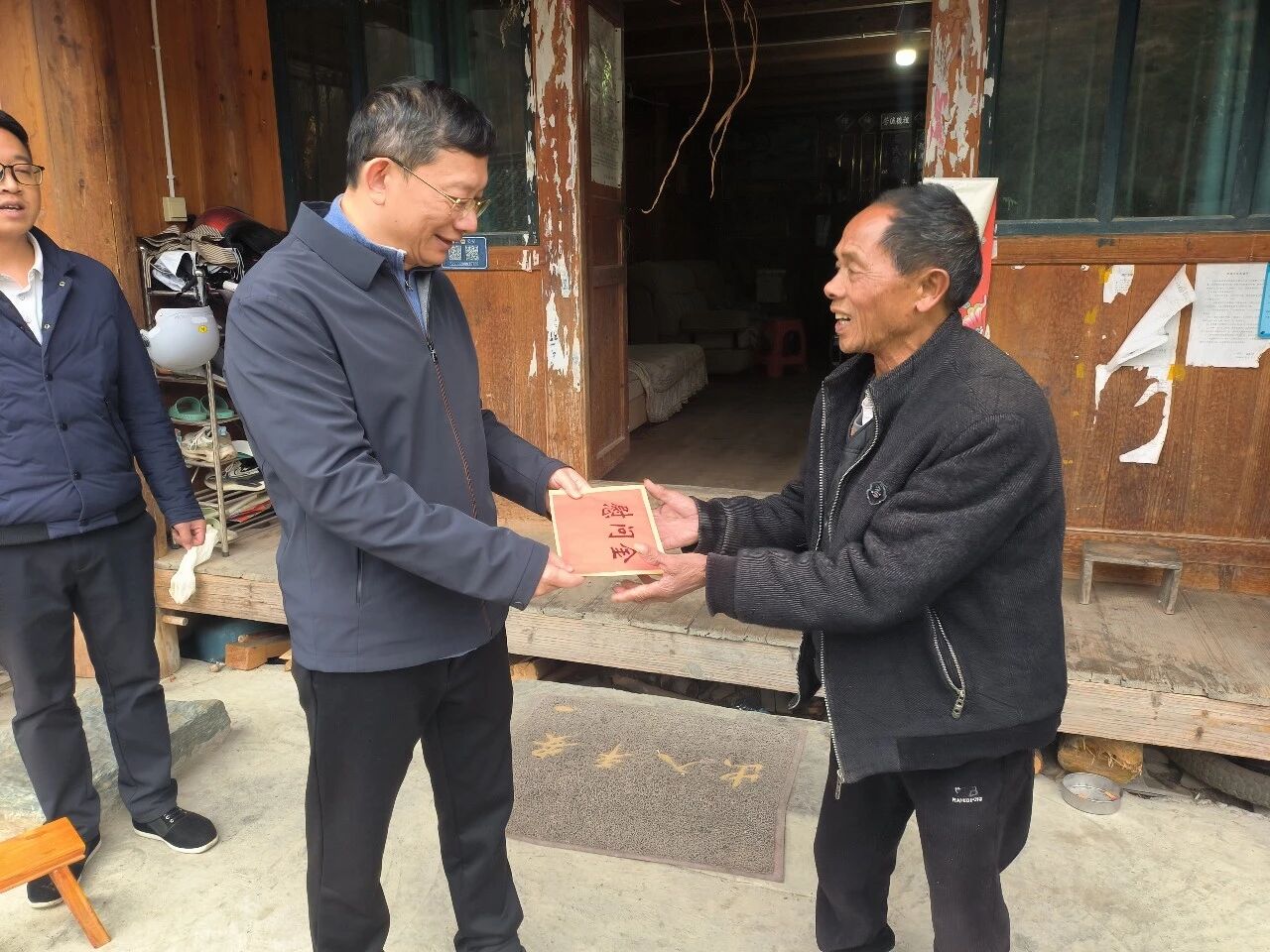 马雷来到榕江县栽麻镇加利中心村(领所村),同驻村工作队一起走访慰问结对帮扶户,与他们亲切交谈,详细询问他们的身体健康、家庭生活、经济来源及子女教育等方面情况,认真倾听他们在生产生活中遇到的实际困难,并送上慰问金及物资。