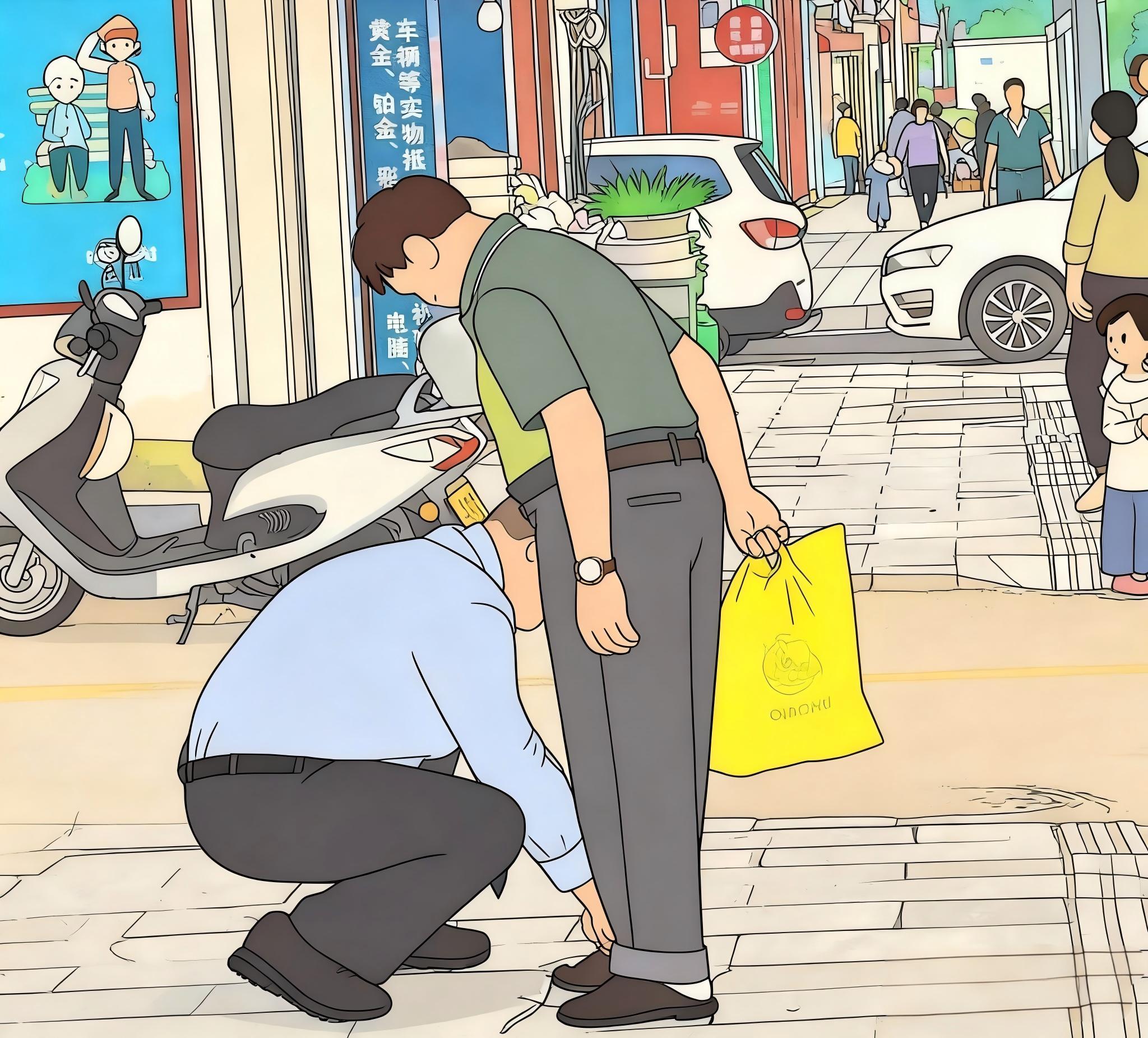 老人办完业务后突发不适,裤子被污物浸染。他躲进洗手间,搓洗了半小时,双手通红,污渍却依然明显。当他穿着湿漉漉的裤子走出来时,裤脚还在滴水,在地面上画出了一串无助的痕迹。