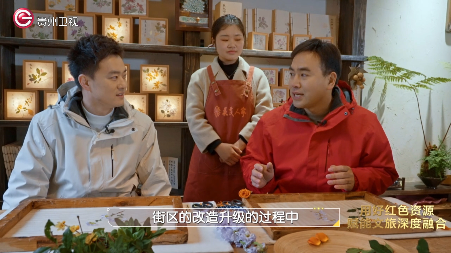 遵义·1935街区位于遵义会议会址旁,融合黔北建筑风格,引入了不少本土非遗传承人、老字号品牌,打造出具有地域特色的商业生态。漫步街区,“花茂人家”无疑是一大亮点。这家非遗工坊,将红色元素巧妙融入到纸浆压花画之中,创作出别具一格的红色文创产品。
