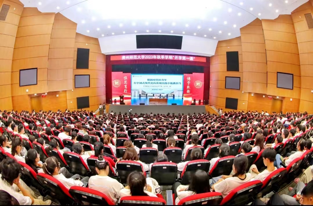 “希望同学们在青春的赛道上不负韶华、向光而行,以青春之我,建立青春之功业,成就青春之梦想!”9月26日,2023年秋季学期“开学第一课”在贵州师范大学大礼堂举行。贵州师范大学党委书记肖远平以“做新时代好青年 在中国式现代化的贵州实践中挺膺担当”为题,为大家上了一堂深刻而难忘的“开学第一课”。