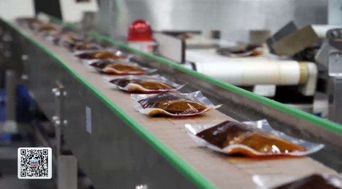 在这家食品加工厂的生产车间,自动化生产线正在灌装辣椒制品。