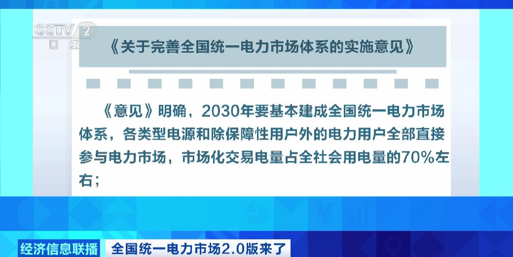 《意见》明确,到2030年,基本建成全国统一电力市场体系,各类型电源和除保障性用户外的电力用户全部直接参与电力市场,市场化交易电量占全社会用电量的70%左右。跨省跨区和省内实现联合交易,现货市场全面转入正式运行。到2035年,全面建成全国统一电力市场体系。