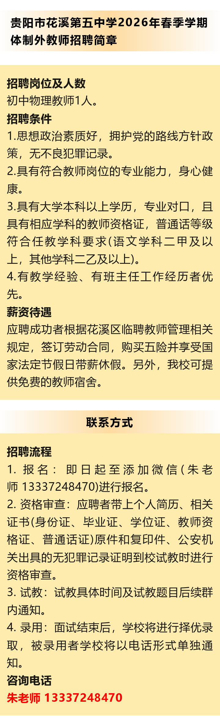 【事业单位】贵阳市花溪第五中学招聘!