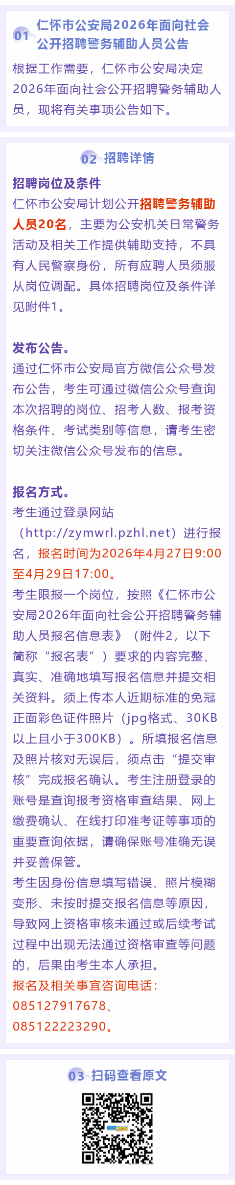 公安局招聘20名警务辅助人员!报名截止时间:4月29日!