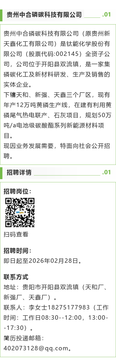 贵州中合磷碳科技有限公司9岗招聘!月薪3500-17500元!大专起报!