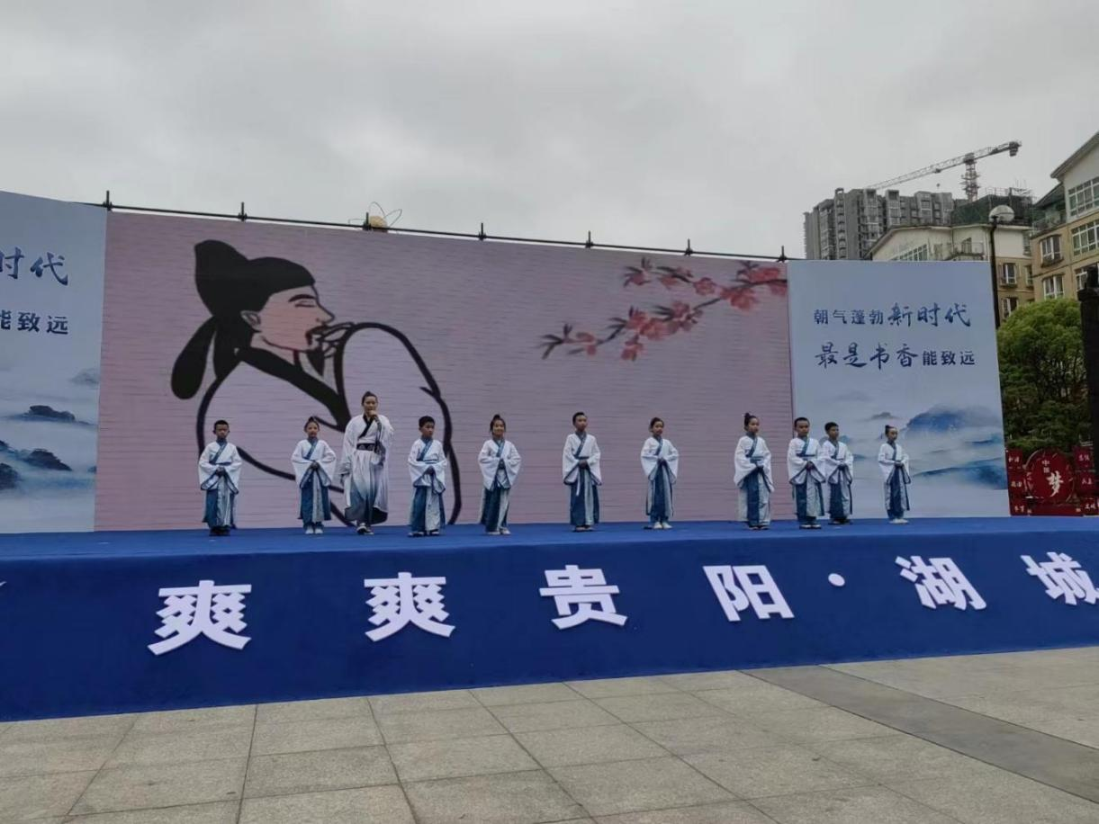 本次活动由清镇市委宣传部主办,清镇市教育局、清镇市工商联、贵阳市新华书店有限公司清镇市分公司等共同协办,各界代表齐聚一堂。活动现场在清镇市委常委、市委宣传部部长吴雁菲的致辞声中拉开序幕,亲子互动送上了诗朗诵《以书启迪》,师生互联—朗诵《唐诗里的中国》以书传承读书之美,贵阳幼儿师范高等专科学校的学生送上了舞蹈表演,各种表演精彩纷呈,最后全场集体诵读经典作品《论语》,激情澎湃,铿锵有力,朗朗书声中让大家感受到书香魅力,为春日的湖城增添了书香气,共享了一场书香满城的阅读盛宴。