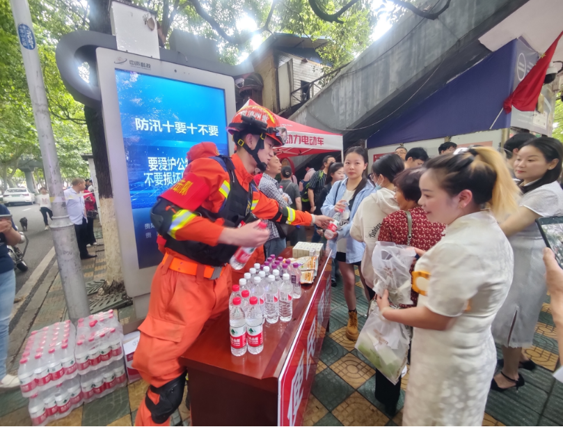 考试期间,消防救援人员在不影响考生考试的情况下,不间断地对考场外及校园周边环境开展动态防火巡查,时刻做好应急处突准备,确保发生突发事故时,能够准确快速到达现场,第一时间处置,全力为考生及考务工作者保驾护航。同时,大队在考点附近设置消防便民服务点,为考生发放饮用水、签字笔、消防宣传手册等资料,并用通俗易懂的语言为等候的家长讲解消防法律法规、日常防火知识、灭火方法以及火场逃生技能等消防安全知识,呼吁广大群众自觉维护公共消防安全。在整个执勤保卫过程中,全体消防救援人员作风严谨、文明执勤,得到了学校师生和家长的充分肯定,树立和维护了消防救援队伍的良好形象。