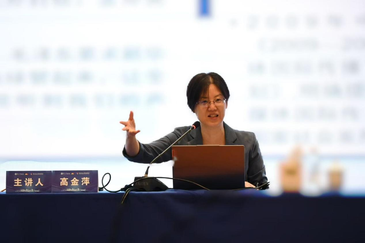 北京外国语大学国际中国文化研究院院长、博士生导师、马克思主义新闻观研究中心主任高金萍以《中国国际传播能力建设:目标、路径及未来趋势》为题进行授课。她指出,当前中国国际传播能力建设的总体方向与现实目标在于“提升国际话语权,推动构建人类命运共同体。”她通过对新时代国际传播能力的建设历程的多面阐释,提出应系统构建中国话语和中国叙事体系,积极宣介中国主张、中国智慧与中国方案,广泛开展人文交流活动,并加强国际传播人才队伍建设。