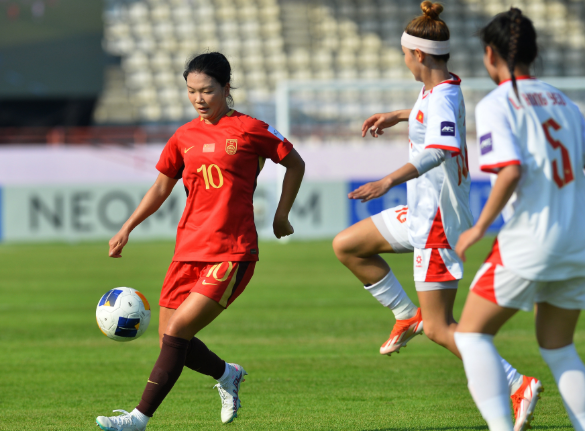 比赛开始后,中国队迅速掌控场上节奏,持续高位逼抢压制对手,控球率保持在80%左右。第39分钟,越南队在解围时出现失误,郑璐推射破门。5分钟后,郑璐接余星悦边路传球抢射完成梅开二度,中国队带着2比0的优势进入中场休息。在此前的预选赛上,郑璐三场比赛贡献三粒进球,是进攻端的重要火力点。易边再战,越南队调整阵容加强冲击,中国队防线承受一定压力。第77分钟,王爱芳主罚任意球送至禁区,曾雨佳后点补射锁定胜局,中国队将3比0的比分保持至终场。