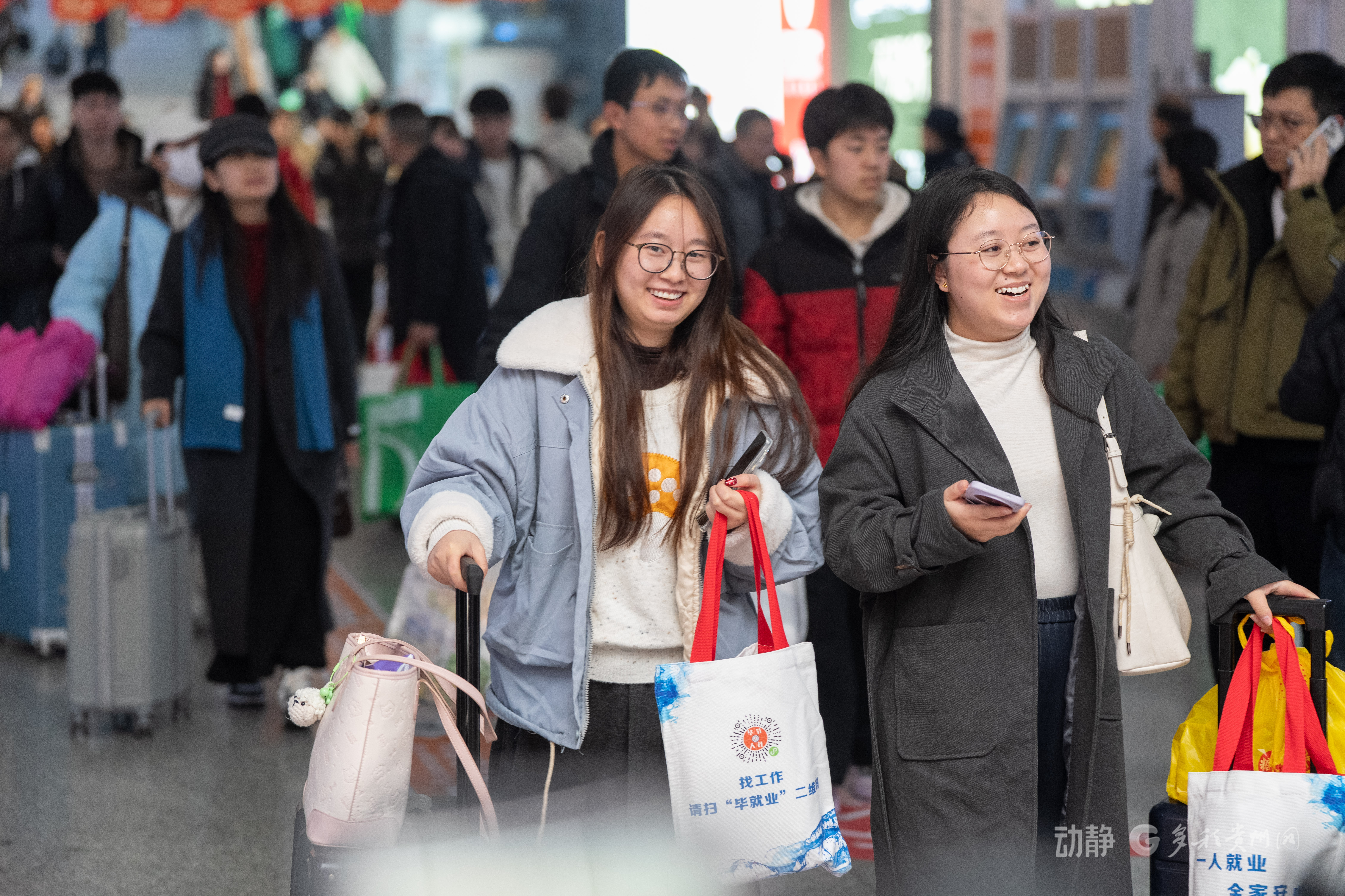 2月12日16时07分,随着D1808次广州南至毕节高铁专列停靠毕节站,1126名毕节籍在粤务工人员平安到家。这是由广东省人力资源和社会保障厅、广州市人力资源和社会保障局、毕节市人力资源和社会保障局组织的免费返乡专列,加上2月10日运送的400人,两趟专列累计护送1526名老乡回家过年。