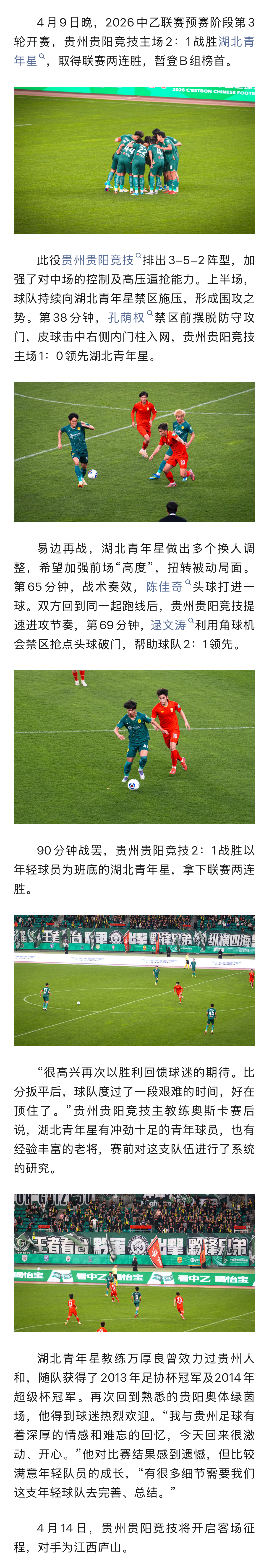 贵州贵阳竞技2-1湖北青年星 取得主场两连胜