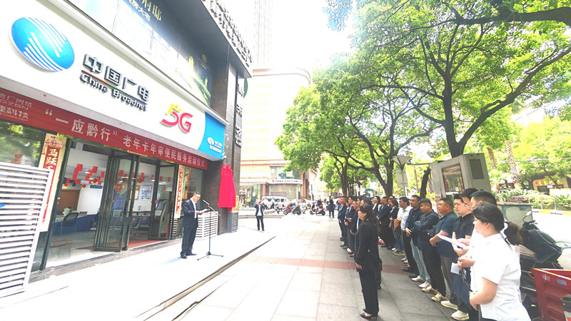 4月15日,贵阳市“一应黔行”老年卡年审便民服务站揭牌仪式在贵广网络南明区青云路营业厅隆重举行。此举标志着由贵阳市交通运营集团有限公司(以下简称“贵阳市交运集团”)旗下贵阳市信捷科技有限公司,与贵州省广电网络公司贵阳市分公司(以下简称“贵广网络”)联合开展的老年卡年审代办服务正式启动。双方聚焦老年群体年审“跑路远、排队久、操作难”的痛点,将便民服务送到家门口,切实打通服务群众的“最后一公里”。
