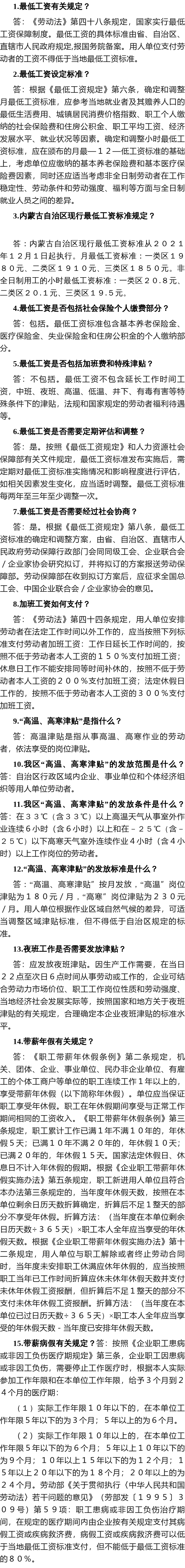 企业劳动用工管理政策法规 (二)工资福利篇