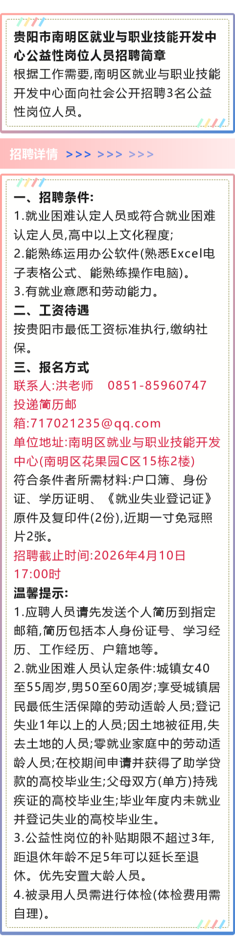 贵阳市南明区就业与职业技能开发中心招聘!报名即将截止!
