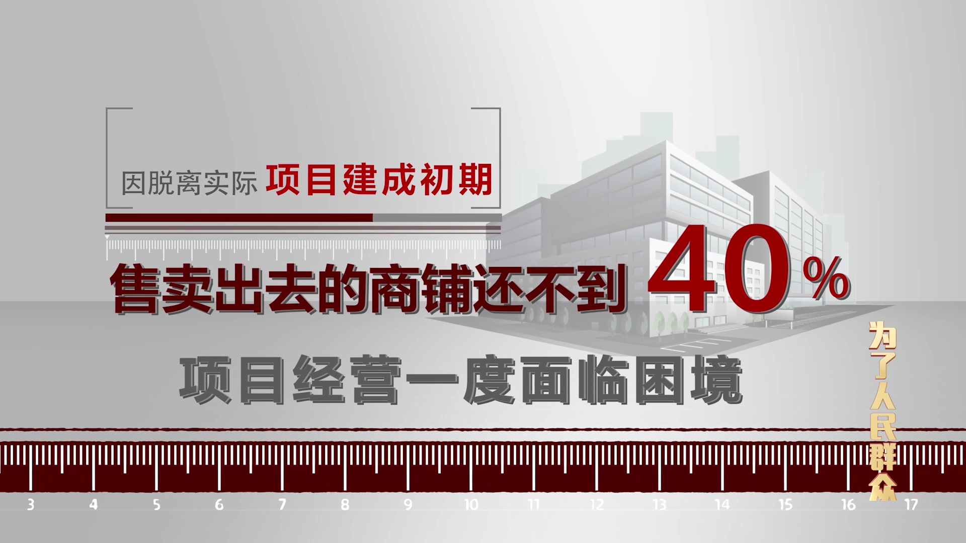 五金机电城项目一期占地99亩,工程投资3.4亿元,建设商铺600余间。因脱离实际,项目建成初期,售卖出去的商铺还不到40%,项目经营一度面临困境。