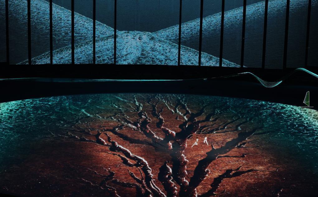 裸眼3D、AR数字穹顶、3D双威亚、流体计算和185米宽、15米高的网幕等技术,实现了立体美学和东方美学的融合,也实现了技术和艺术的双向奔赴。