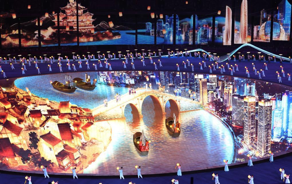 这是9月23日拍摄的开幕式文艺表演。新华社记者 陈益宸 摄