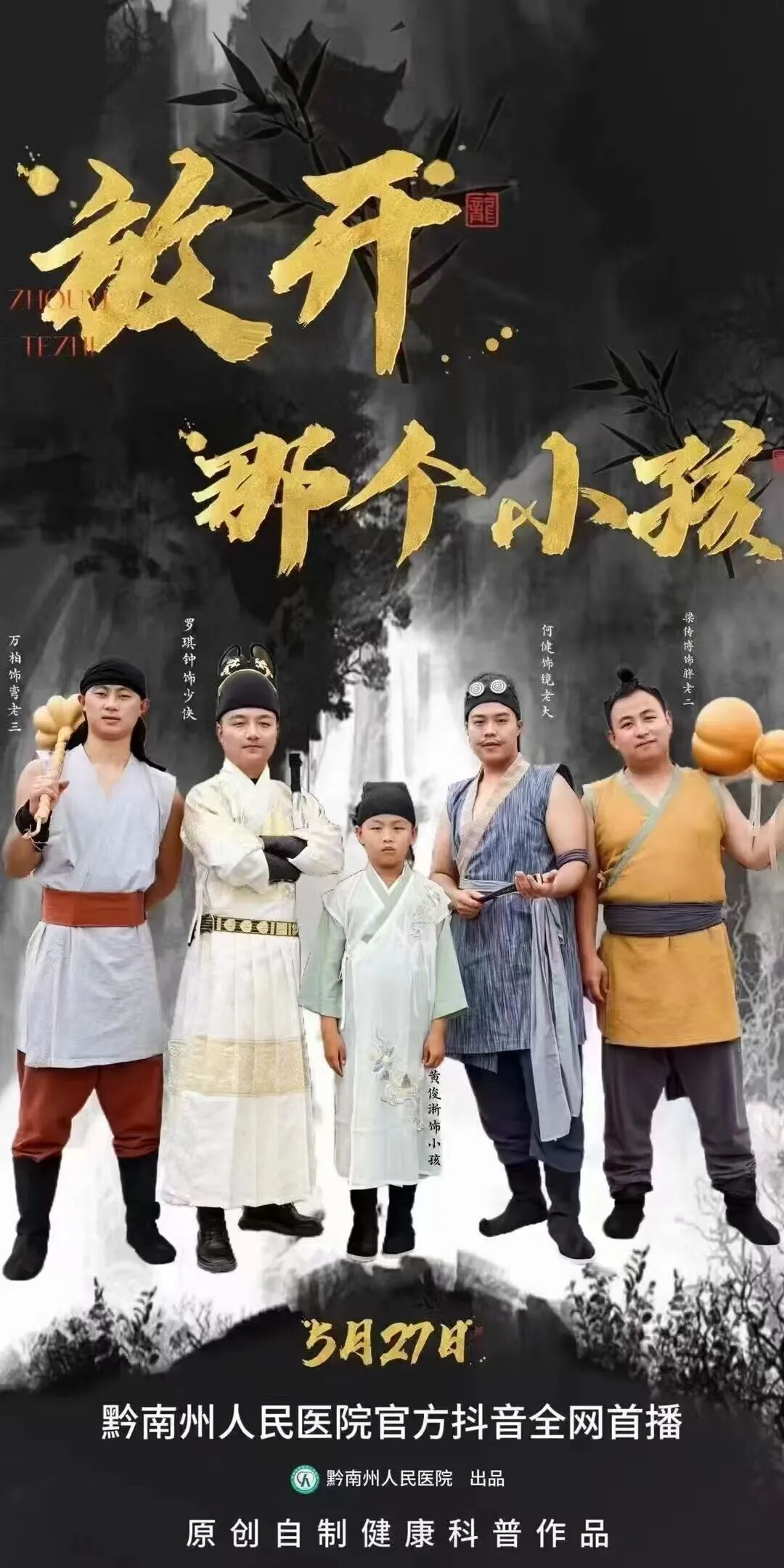 原创儿童青少年健康科普短视频《放开那个小孩》,利用独特的创作思维,聚焦危害儿童青少年健康的三大“杀手”,通过古装武侠对决+Rap说唱的创新形式,让受众在生动有趣的画面中、在幽默搞怪的对话里更直观的感受三大“杀手”给儿童青少年身体带来的健康危害,并向观众传递预防知识和应对方法,引导孩子保持健康良好的生活习惯,做自己健康的第一责任人。该部作品社会影响力巨大,被“人民日报”新媒体平台、“学习强国”学习平台、贵州广播电视台动静APP、贵州省卫健委官方抖音“健康贵州”、黔南州融媒体中心看黔南APP等国家级、省级、州级主流权威重要媒体平台纷纷转载,播放量累计突破10万+,网友评论:“我家娃娃看了三遍”,得到社会各界一致好评。