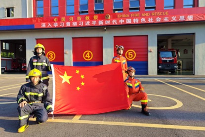 故事之声·关注丨贵阳经开消防员与国旗合影,礼赞祖国