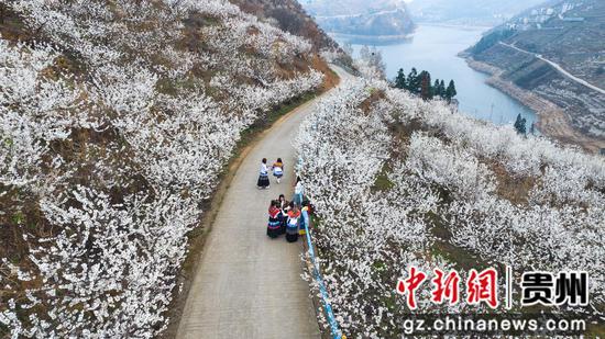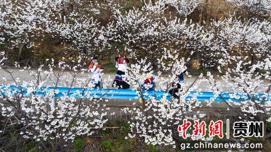 赫章古达樱桃花开吸引人们前来赏花留影 。 谢永奇 摄