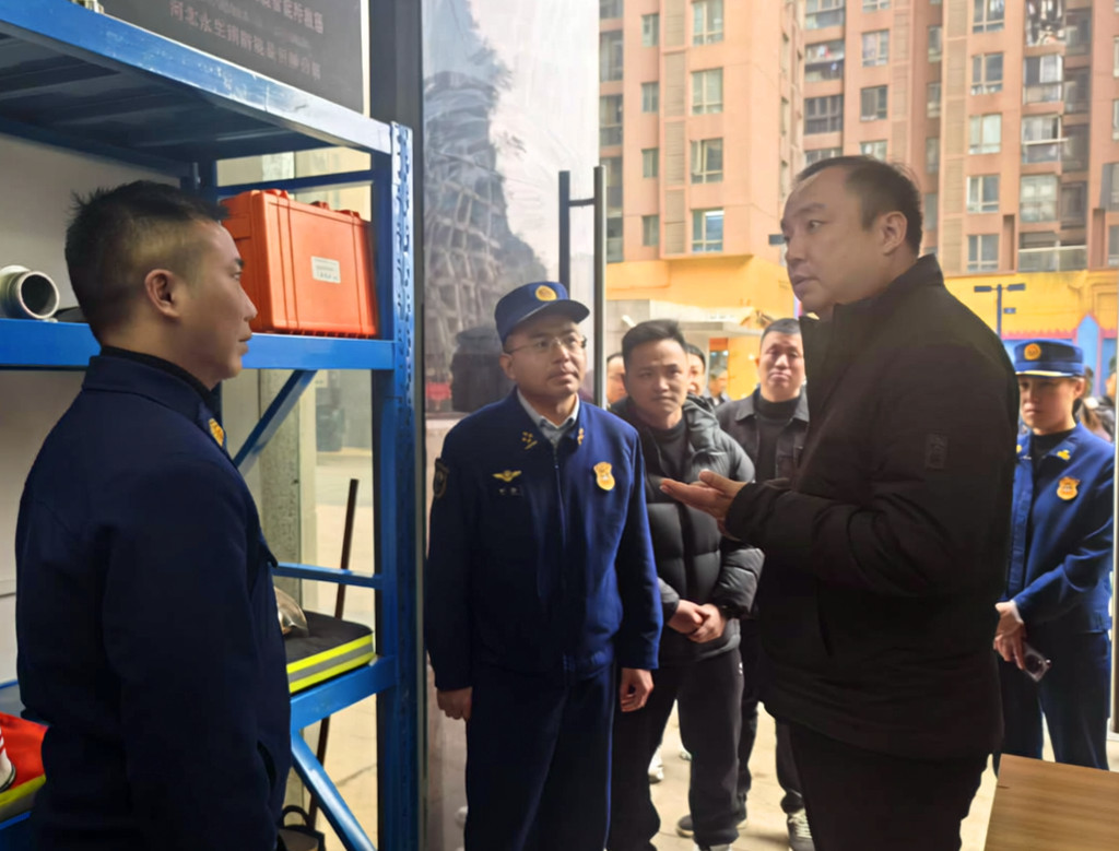 为进一步强化超大型社区治理和贵阳市花果园区域消防安全工作,1月17日,贵阳市南明区委常委、政法委书记龚飞调研督导高层建筑重大火灾风险隐患排查整治工作。