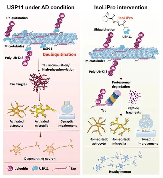 在我国脑科学和中枢神经系统创新药研发领域,一直面临着疾病机理复杂、研发投入高昂、药物难以穿越血脑屏障等行业痛点。谭俊教授团队研发的AY-1001(Isolipro)作为一种全新结构小分子药物,其创新机制在于通过USP11、GSK-3和CDK5等多靶点作用:(1)显著抑制AD相关的tau病理;(2)减少β-淀粉样病变; (3)改善神经炎症及促进神经细胞突触再生,从而产生明确的神经保护和抗AD作用。临床前研究显示,AY-1001具有优异的血脑屏障穿透能力,能够高效靶向中枢神经系统,可能避免外周不良反应。此外,研发团队还发现,AY-1001作为新型配位锂盐,具有比乳清酸锂更低的电导率,因此也为其成为新型抗AD药物提供了重要的理论支持。