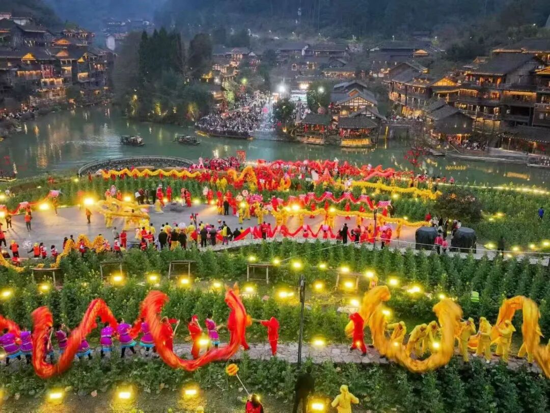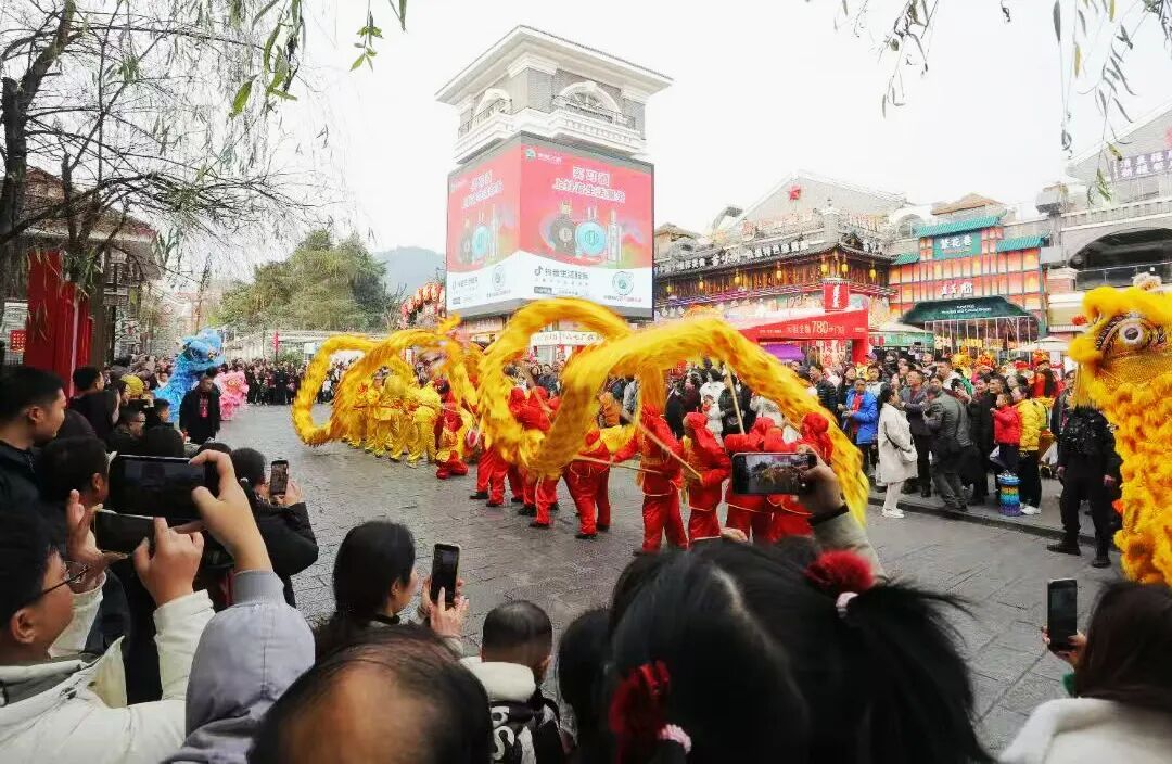 在播州区乌江寨国际旅游度假区,烟花秀与创意舞龙交相辉映,吸引游客10.33万人次,按可比口径增长84.2%。红花岗区红军街头的“红城韵·新春送福”舞龙舞狮巡游,将红色地标与传统民俗巧妙串联,单日最高吸引游客超10万人次。桐梓县花秋镇木堰村的群众文体活动,由村民自导自演,金龙舞动、拔河扭扁担等乡土特色浓郁,获《人民日报》点赞,成为乡村文旅的标杆案例。