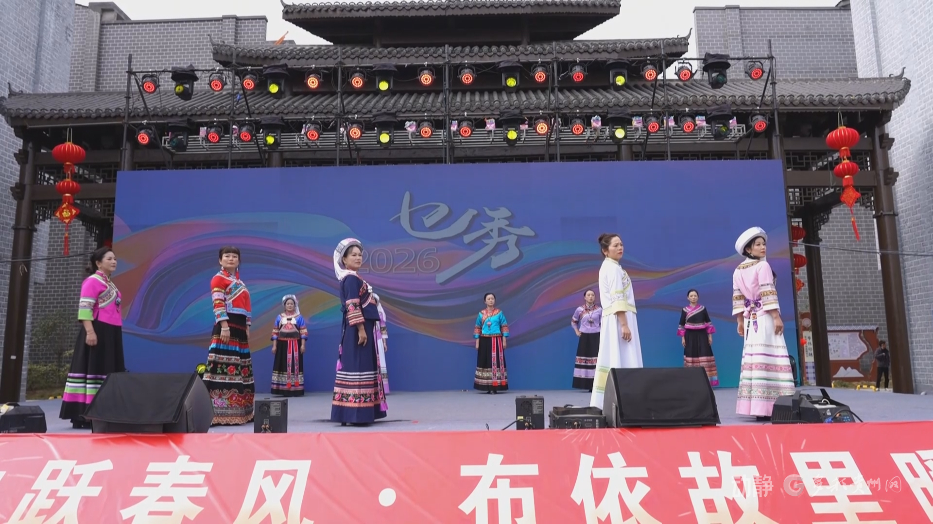 新春将至,册亨县布依风情街年货节热闹开市。舞龙队伍穿梭派发红包,现场欢声笑语不断。“村T—布依‘乜秀’”服饰秀惊艳登场,模特身着传统与改良布依服饰,绚丽纹样传递民族文化魅力,吸引众人驻足拍照。