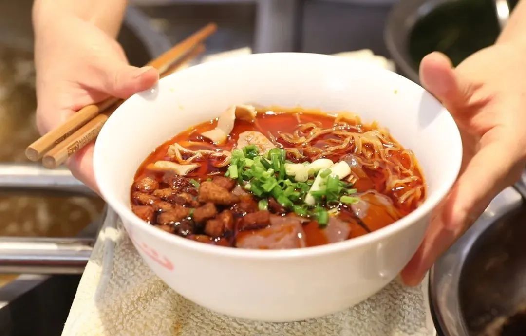肠旺面是贵阳本地人的“心头好”,是贵阳地区独有的美食,因在面中加入猪肠和血旺,故称为“肠旺面”。红红的猪大肠、嫩滑的猪血,再加上秘制的酱料和辣椒,一入口,麻辣鲜香便瞬间在舌尖绽放出多重滋味,每一口都是满满的幸福感。
