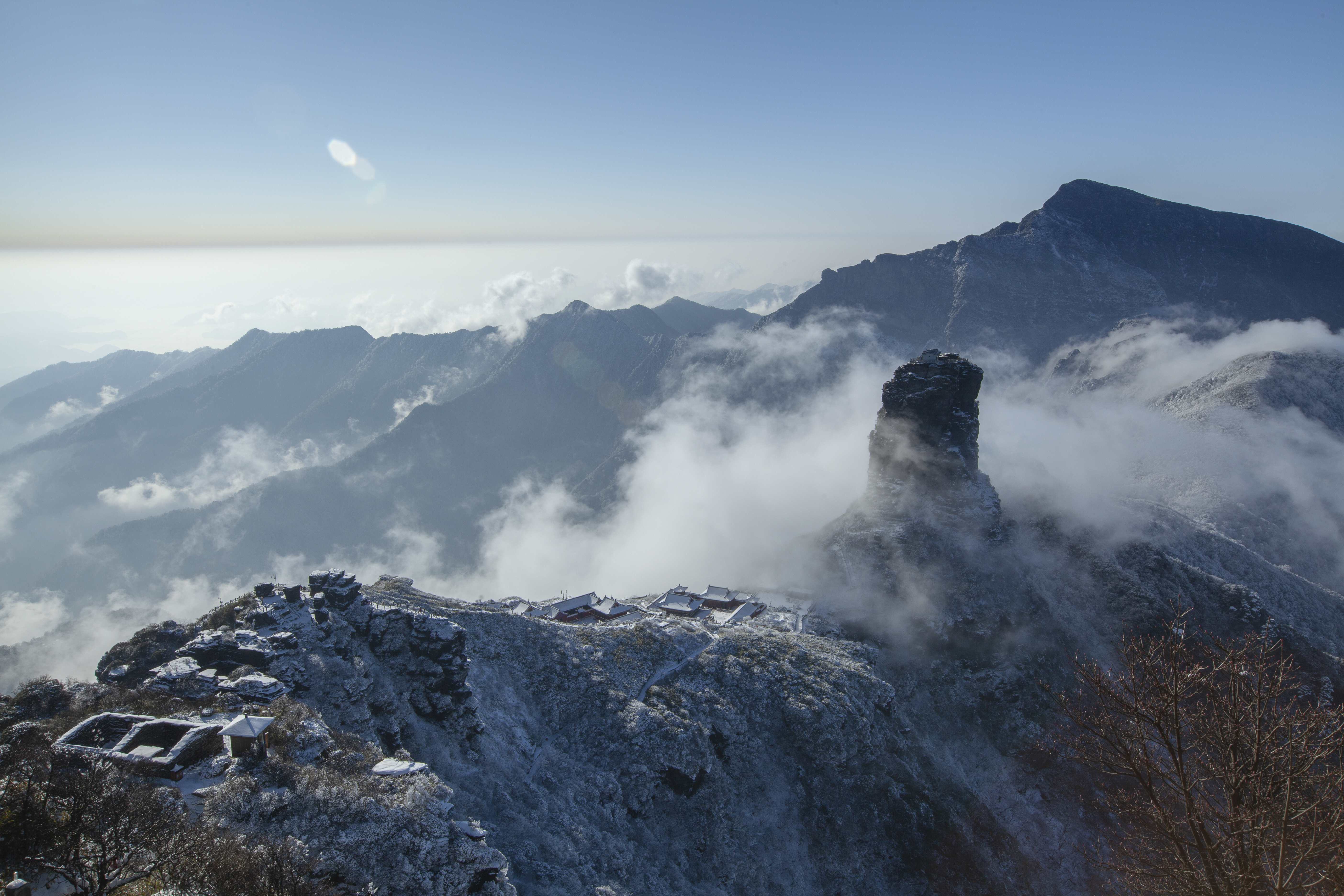 第六天乘车前往铜仁市梵净山。梵净山是世界自然遗产、世界生物圈保护区、国家级自然保护区、国家“5A”级风景名胜区,面积为775平方公里,森林覆盖率达97%,被誉为“地球绿洲”“动植物基因库”。它犹如一部浑然天成的地质史书,登山及顶,一不小心便误入仙雾缭绕的天空之城。远处的山峦若隐若现,就像是一幅震撼的水墨画。梵净山还保留了大量古老孑遗、珍稀濒危和特有物种。这里栖息着7925种野生动植物,是黔金丝猴、梵净山冷杉等为代表的珍稀动植物的唯一栖息地。