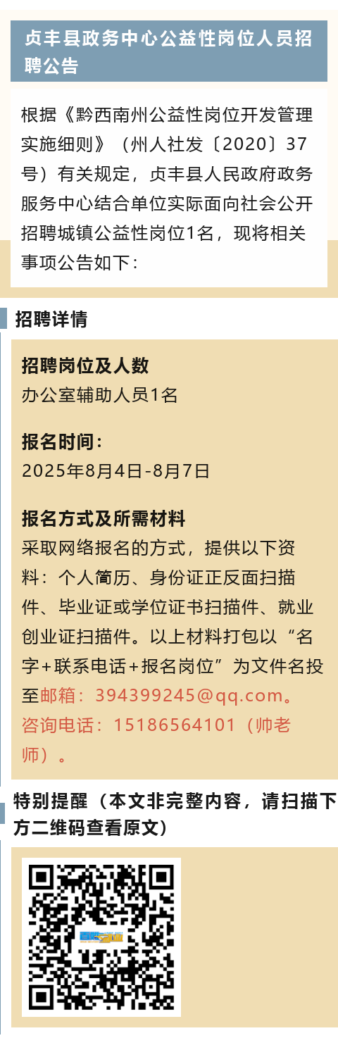 【事业单位】政务中心招聘办公室辅助人员!报名截止时间:8月7日!