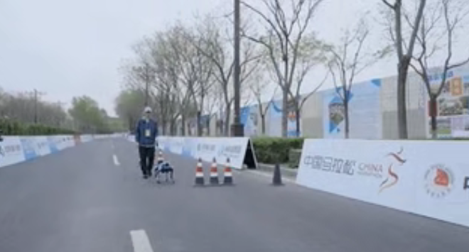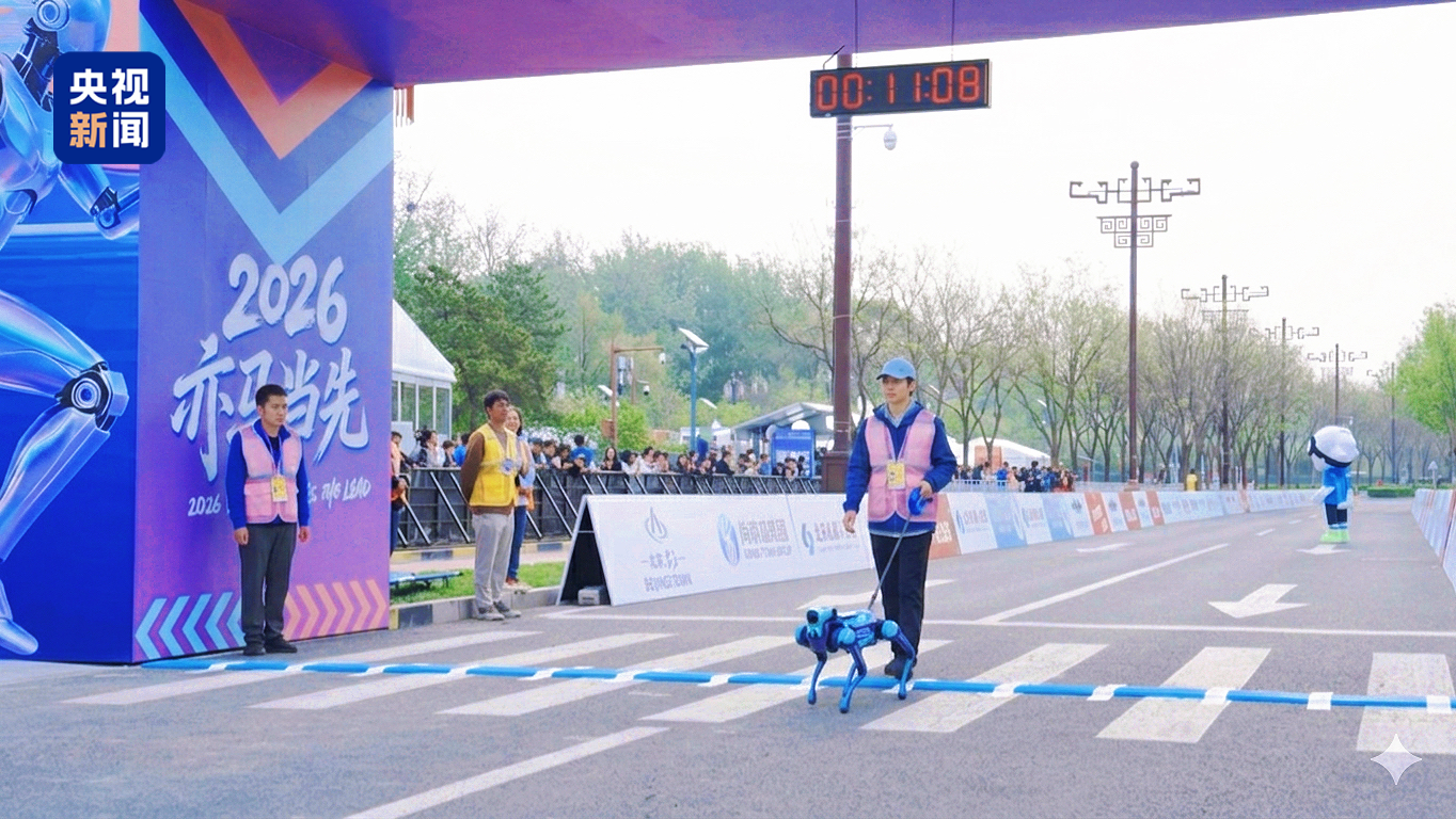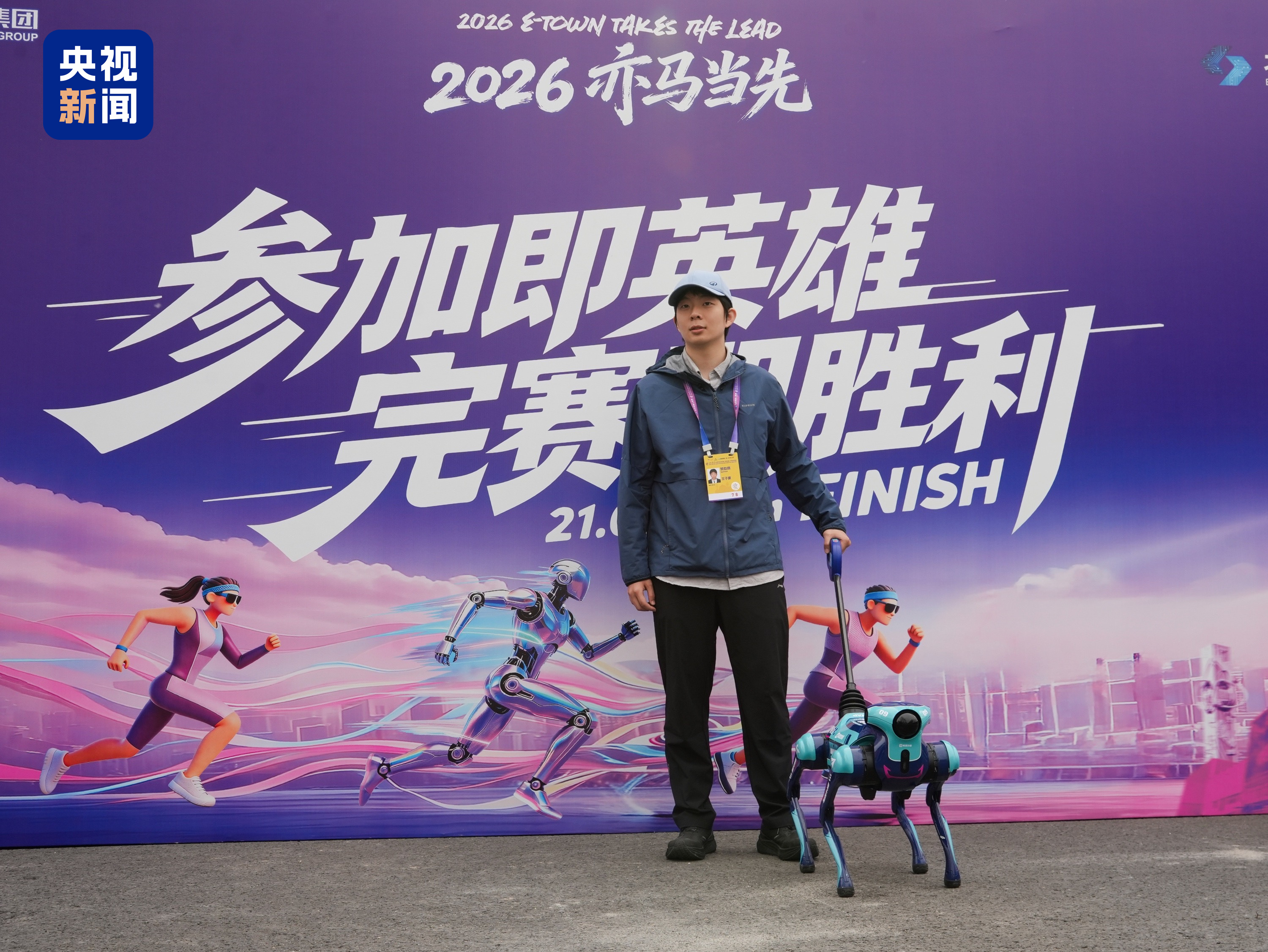 19日,在2026人形机器人半程马拉松“彩蛋环节”,视障大学生王子豪参加了一场特殊的挑战——在一台四足机器人的引领下,他成功避开各种动静态障碍,顺利走完300米。