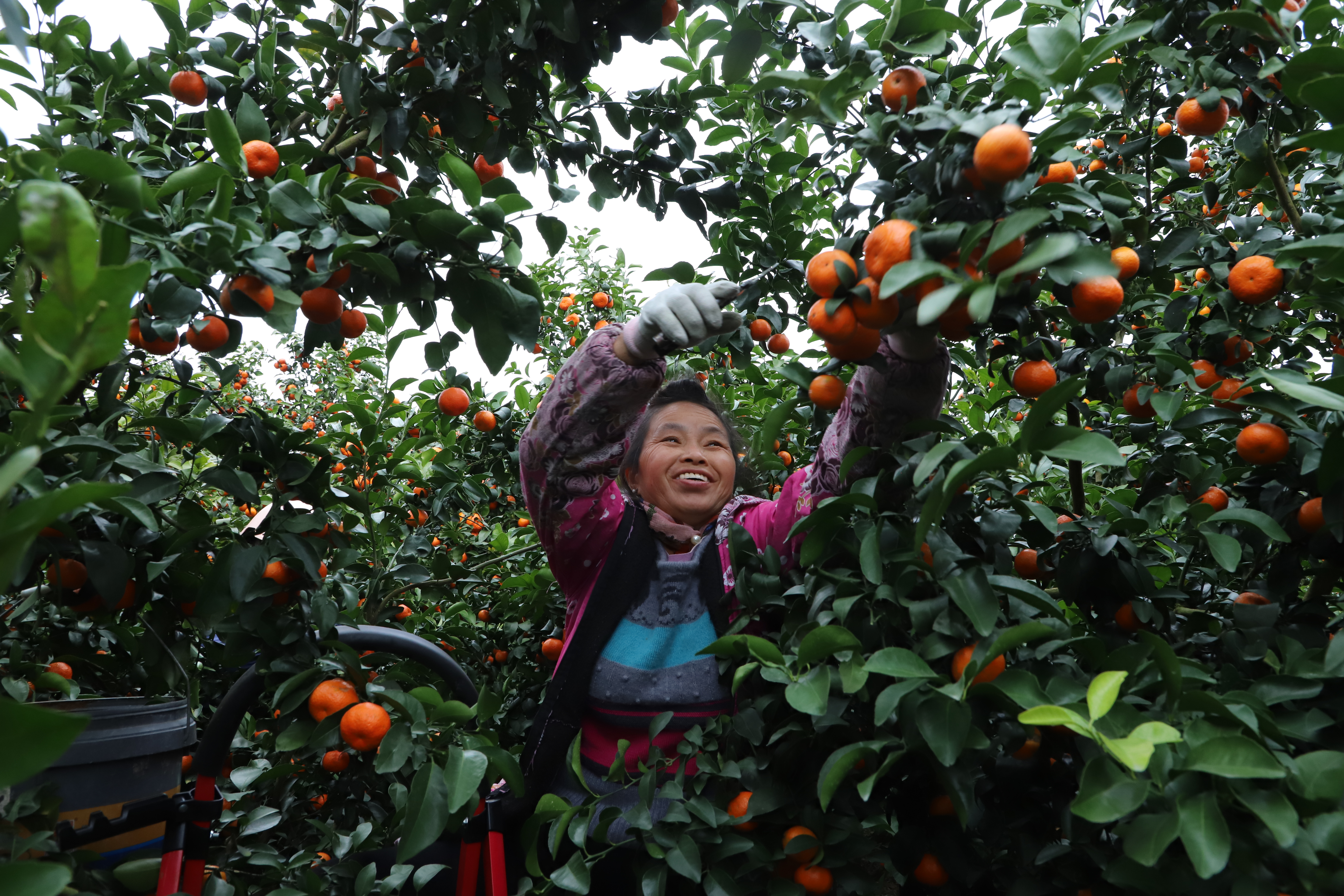 趁着连日晴好的天气,果农们身着轻便衣物,穿梭在果树间,剪果、装篮、搬运,确保将最新鲜的果实送到消费者手中。