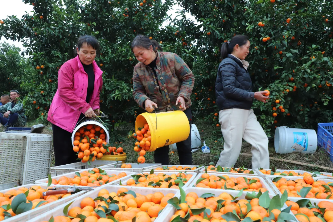 “我们和客商已经签订好订单,带他们到果园实地考察,客商对果子的品质特别满意!” 大河镇新场村主任张先继介绍,“年前要把村里的蜜橘、皇帝柑全部销往各个城市,确保群众的果实都能卖出去,让大家揣着‘甜收入’过个安稳年。”