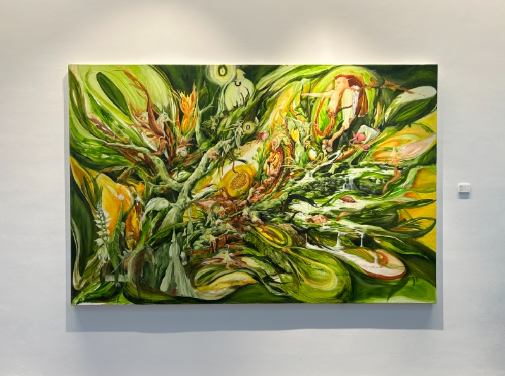 其作品以画面为载体,将山间精灵、自然奇景与梦境符号化景观融为一体,构建出介于现实与想象之间的视觉世界。通过跨越现实与幻想、地域与精神的复合叙事,贵州的自然、文化与心灵意象在崔瀚宇创造出的视觉画面中交错融合,如中国哲学中的“卧游”般在心境与图像间神游,呈现出既富诗意、神秘感,又饱含哲学思考的当代艺术体验。