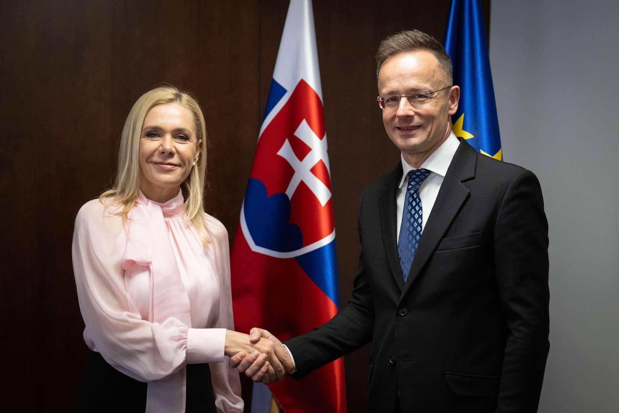 △斯洛伐克经济部长萨科娃与匈牙利外长西雅尔多(资料图)