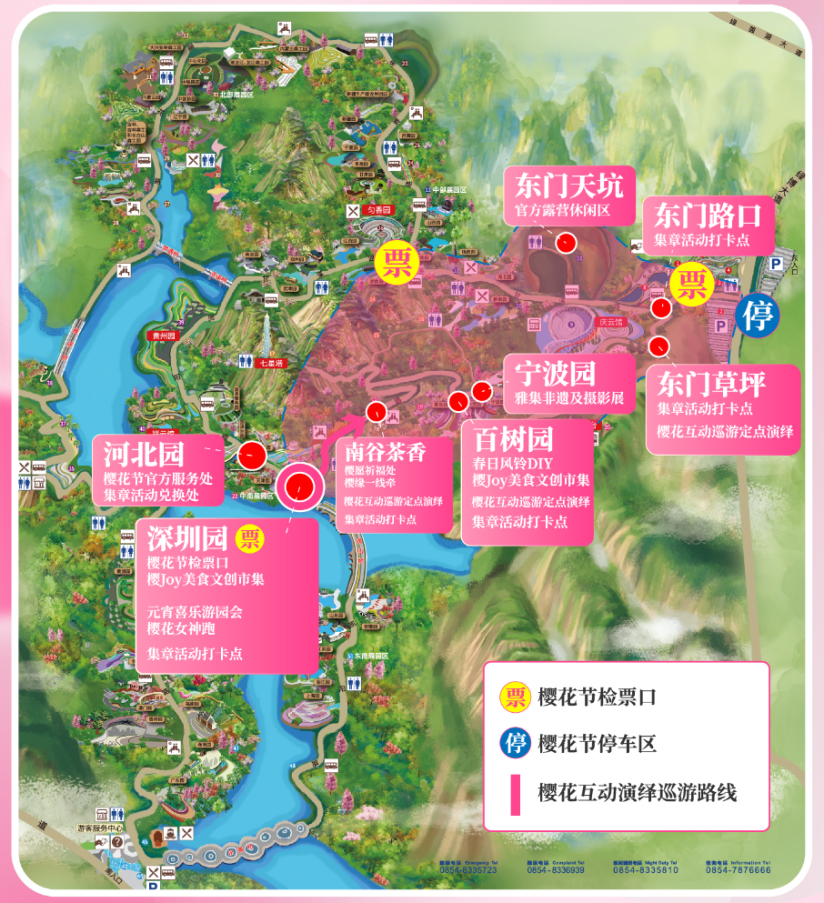 为确保游客安全,提供更好的游览体验,樱花节期间樱花园区域实行交通管制:· 车辆禁入:所有社会车辆不得驶入樱花园区域。· 推荐入口:自驾游客请从南门或西门入园。· 东门提示:东门禁止车辆入园,请从该方向前来的游客配合现场指引,将车辆停放至指定区域。