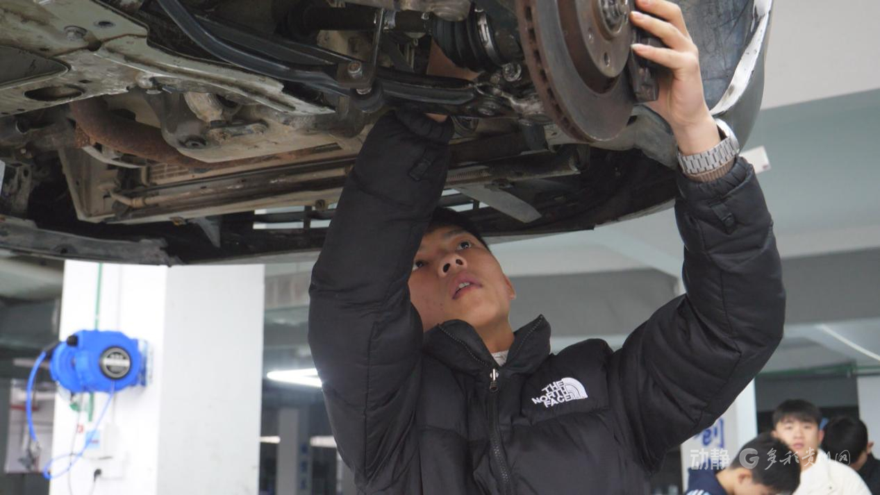 “我们专业有三个年级,现在在校的学生583人,2023年从老校区搬来新校区的时候,实训室得到了升级,但是车辆还是非常紧缺,只有10来辆。通过我们高职的帮扶院贵州交通职业大学积极地协调,支援8辆车,满足学生的课程需求。”黔东南苗族侗族自治州从江县职业技术学校汽车专业教师李盛文介绍道。